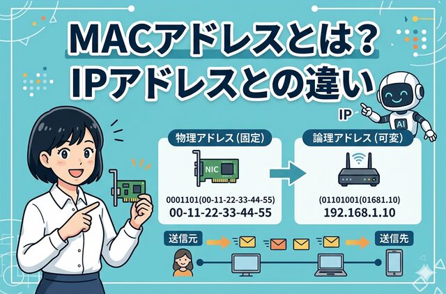 【ITパスポート】MACアドレスとは?IPアドレスとの違いを例えでわかりやすく解説