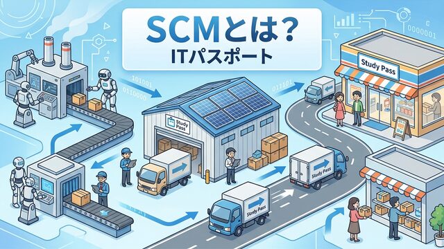 ITパスポートの勉強をしていると、アルファベット3文字の用語がたくさん出てきて「どれがどれだか分からない…」と混乱してしまうことはありませんか?特に「SCM」は試験によく出る重要なキーワードですが、専門用語で説明されるとイメージが湧きにくいです... -