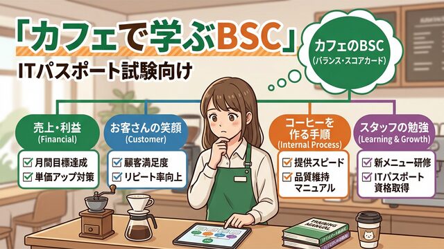 ITパスポート試験において、BSCは非常に重要なキーワードです。どのような形で出題されるのかポイントを押さえておきましょう。