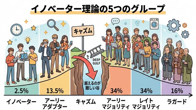 キャズムを正しく理解するには、まずイノベーター理論の基礎を押さえる必要があります。