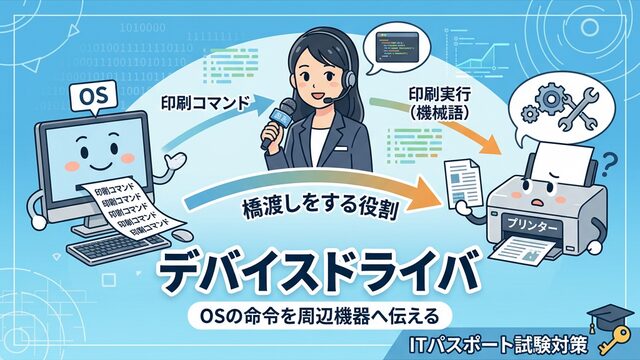 この記事では、デバイスドライバの役割と仕組みを具体例とともに丁寧に解説します。試験で確実に得点できるよう、一緒にマスターしていきましょう!