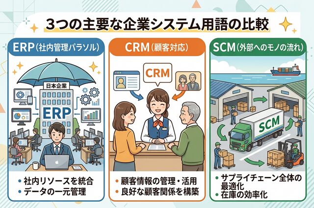 特に「ERP」は、意味が広すぎてイメージが湧きにくいと感じる方が多い用語です。