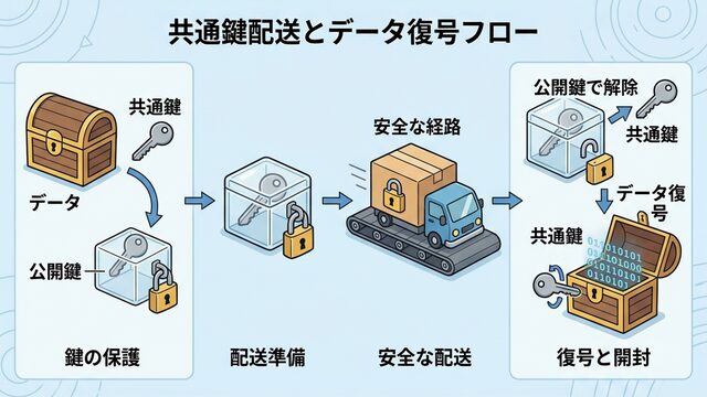 巨大な金庫の鍵を、小さな安全な箱に入れて届ける様子をイメージしてみましょう。なぜこの方法が効率的なのか、その理由を順を追って解き明かしていきます。