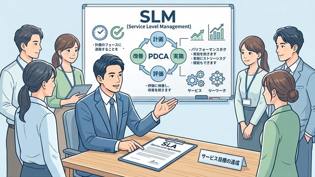 SLM(Service Level Management:サービスレベル管理)は、サービス提供者と利用者の間で結んだ約束を守り、さらにサービスの品質を維持・向上させるための管理活動全体を指します。